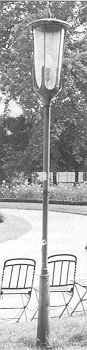 Diese Tatsache kann bei der Diskussion um den künftigen Laternentyp nicht unberücksichtigt bleiben. Praktische Überlegungen sprechen vielleicht für ein jüngeres Erzeugnis (Kommunale Kandelaber in Originalausführung oder in der Version für Starklicht Abb. 29, 31) wobei bei den beiden letztgenannten etwaige Vorschaltgeräte leicht unter dem Dach untergebracht werden können.